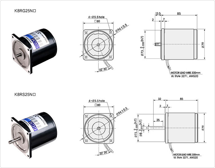 25W (□80mm) | K8RG25N□, K8RS25N□ | LEAD WIRE TYPE |