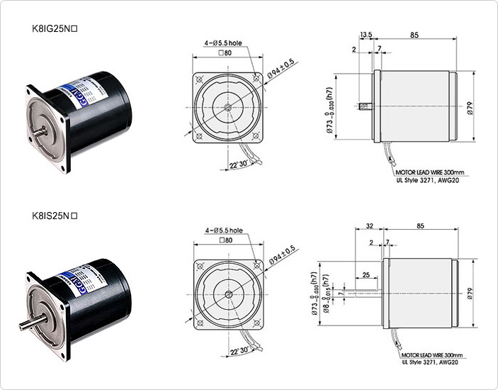 25W (□80mm) | K8IG25N□, K8IS25N□ | LEAD WIRE TYPE |