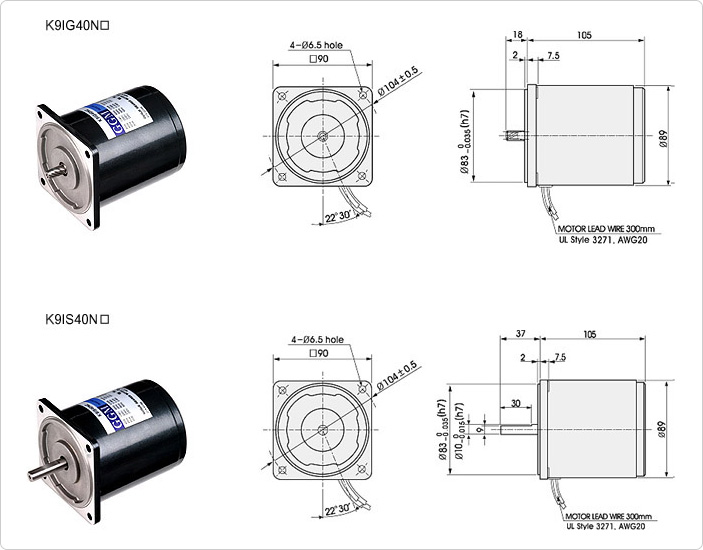 40W (□90mm) | K9IG40N□, K9IS40N□ | LEAD WIRE TYPE |