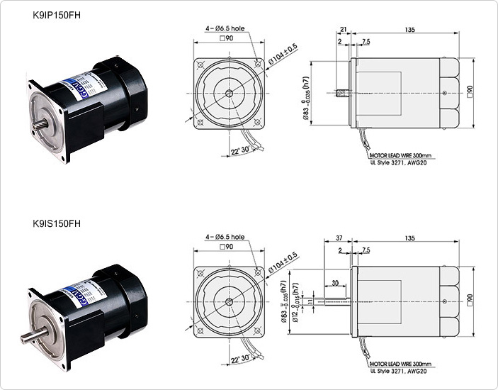 150W (□90mm) | K9IP150FH, K9IS150FH | LEAD WIRE TYPE |