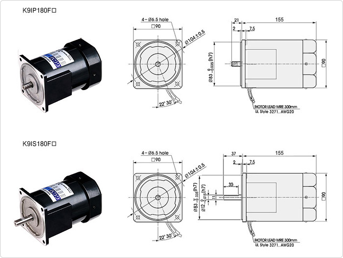 180W (□90mm) | K9IP180F□, K9IS180F□ | LEAD WIRE TYPE |