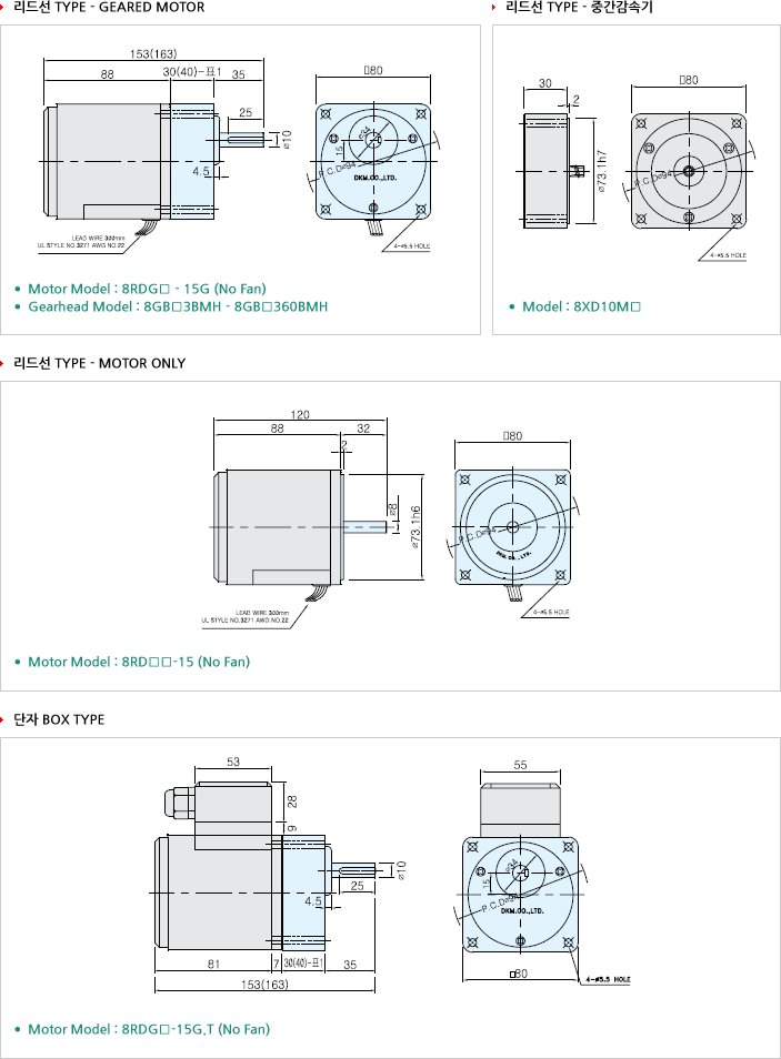LEAD선 Type | 단자 Box Type | gfcm | nM.m | oz-in | r/min | ㎌ | VAC | A |