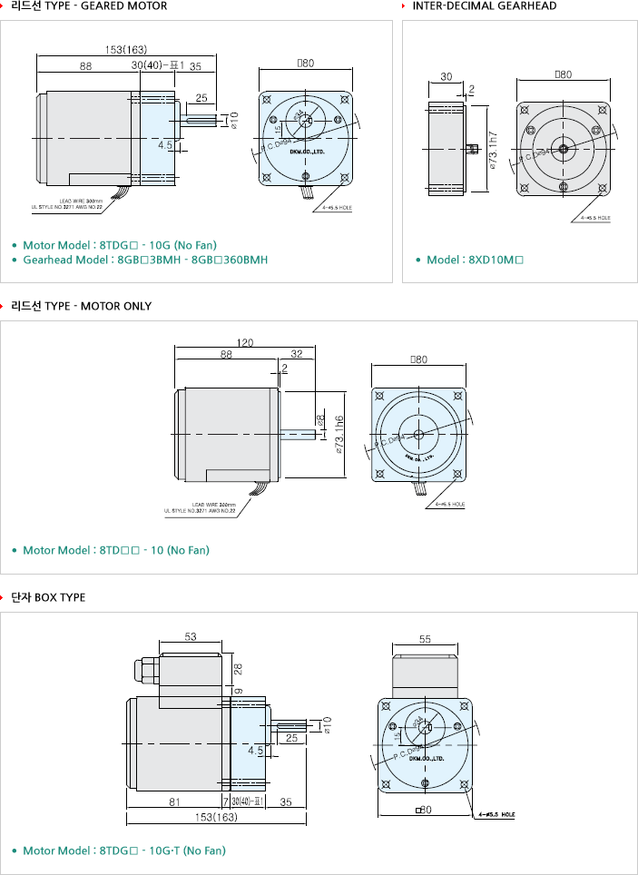 LEAD선 Type | 단자 Box Type | VAC | Hz | gfcm | mN.m | oz-in | HP | W | |