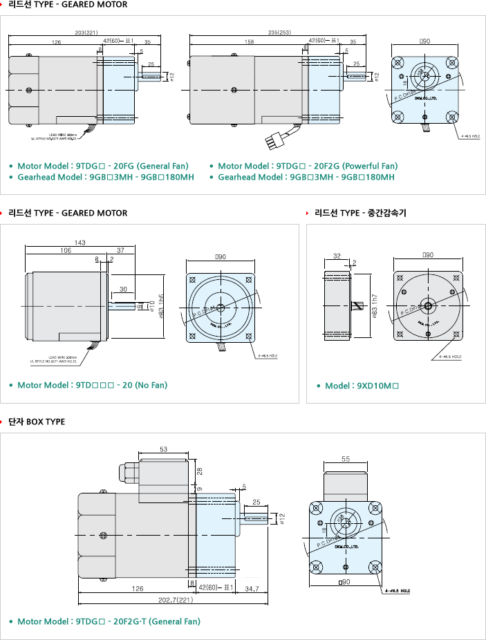 LEAD선 Type | 단자 Box Type | VAC | Hz | gfcm | mN.m | oz-in | HP | W | |