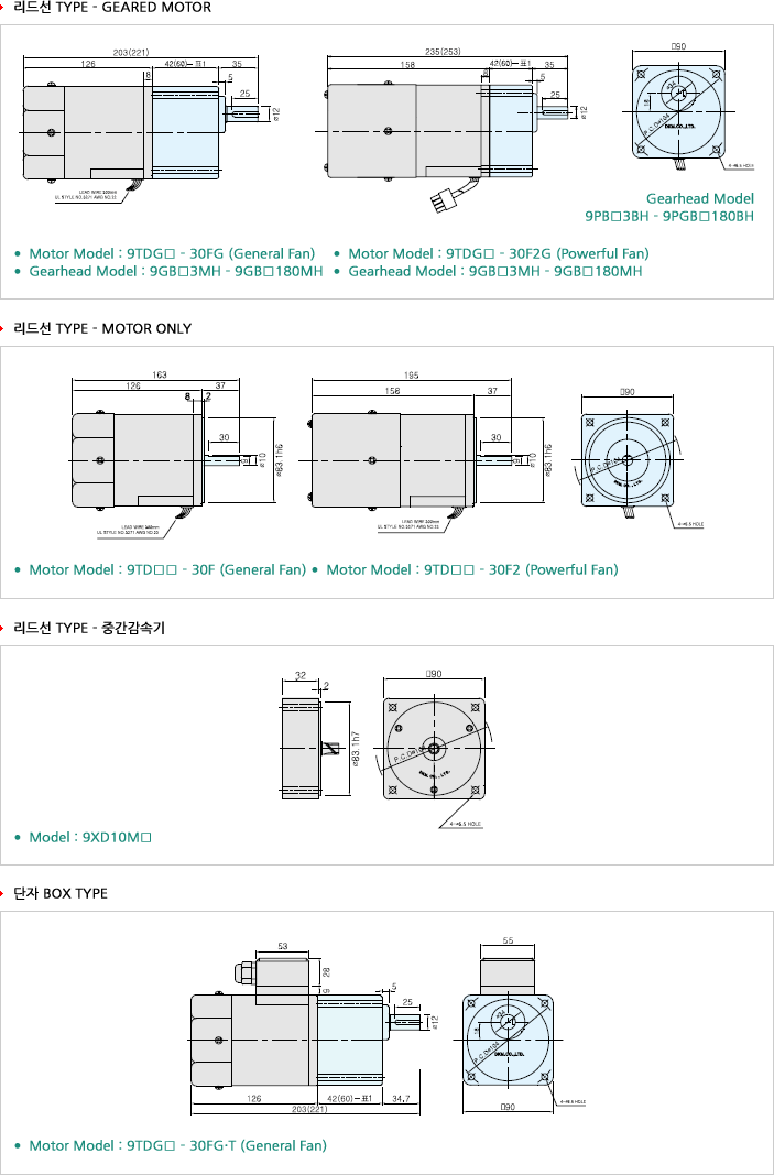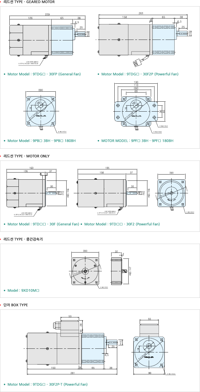 LEAD선 Type | 단자 Box Type | VAC | Hz | gfcm | mN.m | oz-in | HP | W | |