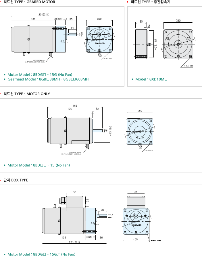 LEAD선 Type | 단자 Box Type | HP | W | VAC | Hz | A | ㎌ | VAC | |