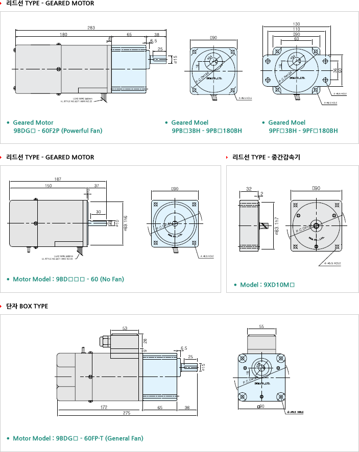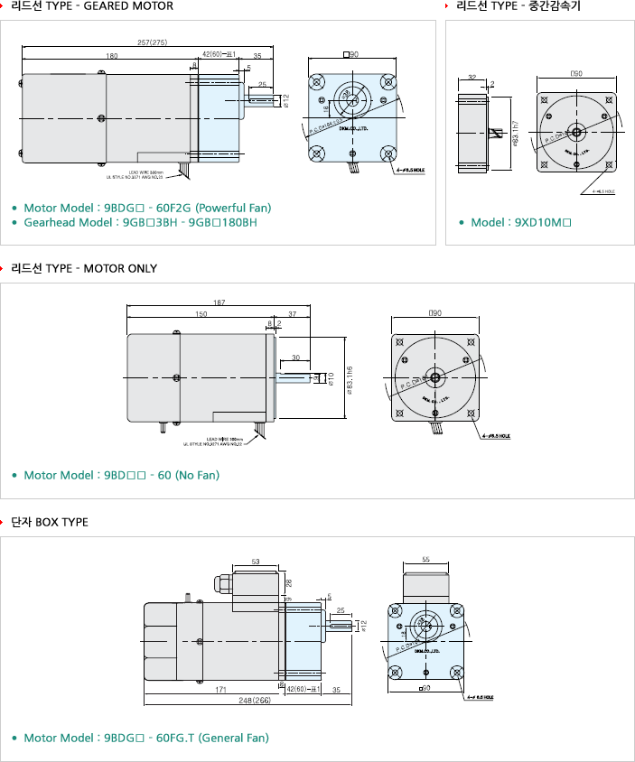 9BDG□-60P : 치절 SHAFT 9BDS□-60 : D-CUT SHAFT |
