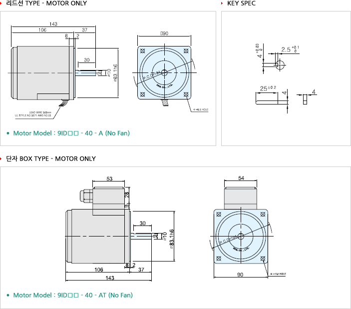 LEAD선 Type | 단자 Box Type | HP | W | VAC | Hz | gfcm | nM,m | oz-in |