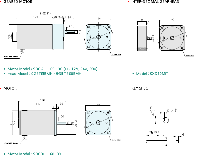 Motor/Gearhead | 감속비 | 2 | 3 | 3.6 | 5 | 6 | 7.5 | 9 | 12.5 | 15 | 18 | 20 |